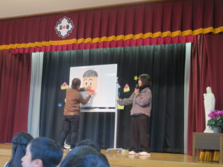 小さい頃から見てきた、お兄さんお姉さんが演じてきた聖劇。今年は自分たちが聖劇をやるんだ!とやる気いっぱいで練習に取り組んでいました。覚えることがいっぱいで友達と励まし合いながら練習を頑張り、本番ではそれぞれの子ども達が自分の役に自信を持ってステージに立つ姿はとても立派で輝いていました。