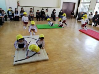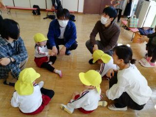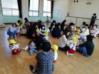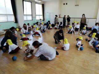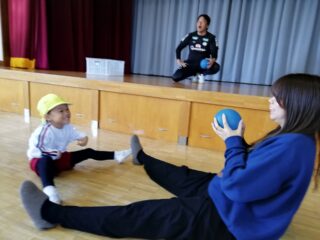 準備体操からマット運動までは、お家の方は見学。その後は、親子でボール遊びや触れ合い遊びを楽しみました。グループ作りゲームでは、お家の方同士も少し交流でき良い雰囲気でした(^^)