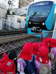 日吉町の駅に着くとちょうど電車が来て子ども達も大興奮!!