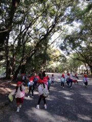 境内に入るとすぐにどんぐりが!!「先生いっぱい落ちてるよ!」と言ってみんなで様々な大きさのどんぐりを見つけました!自分のの袋にたくさん入れてお土産にしました☆