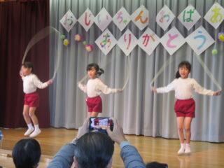 ボールつきグループ、楽器の演奏グループ、縄跳びグループ、ダンスグループに分かれて発表し、みんなでカブを抜きました!