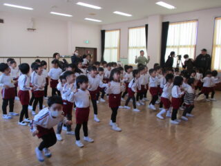 満3・年少グループ、年中・年長グループに分かれて豆まきをしました。
