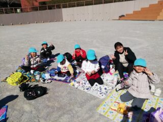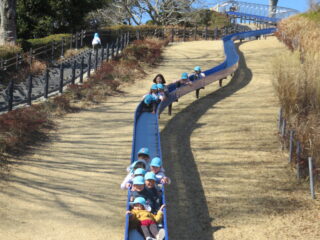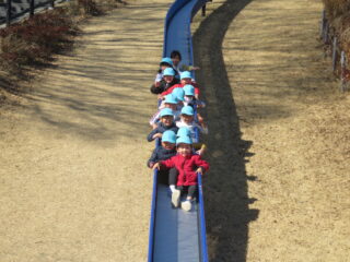 みんなで美味しくおにぎりをいただき、その後は大きな滑り台で思いきり遊びました。寒さが心配されていましたが、思っていたよりも温かく全力で遊んでいる子ども達。