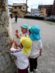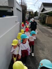 年少さんは年長さんのお兄さん、お姉さんに手を繋いでもらい、安全に行ってくることができました。
