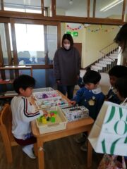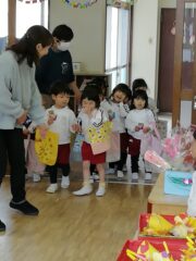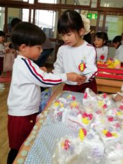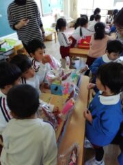 3月10日は満三歳児クラスのつぼみさん、3月12日は年少たんぽぽ組さんを呼んでのお店屋さんを開きました!!