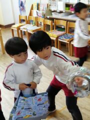 年中の子ども達は小さなお客さんに優しく、親切に接してくれて、お兄さん、お姉さんとして頑張っていました!!