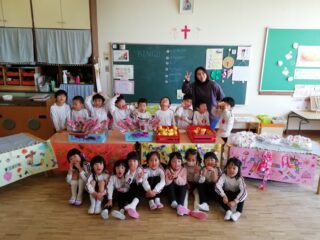 お店は「チョコバナナ屋さん」「クレープ屋さん」「ケーキ屋さん」「ゲーム屋さん」の4つで、年中の子ども達は準備を頑張り、この日を楽しみにしていました!!